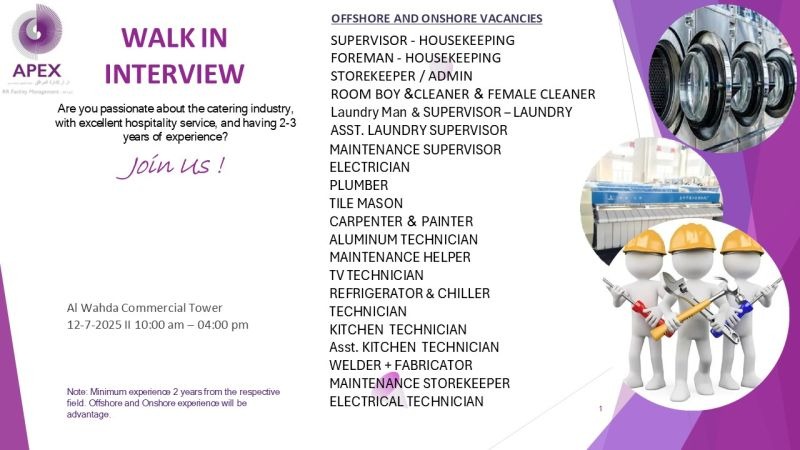 Note: Minimum experience 2 years from the respective field Offshore and Onshore experienas will be advantage